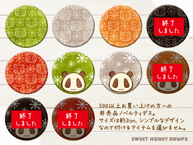 人気の柄のスイーツ柄をリデザインした缶バッジが初登場。