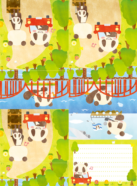 パンダを使ったオリジナルキャラクターのパムダとねこのしまろ達がおりなす、